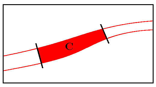 However, the speed of the fluid is not everywhere the same. In more narrow parts of the streamtube the fluid flows faster. Remember that the speed of the fluid is faster where the density of streamlines is larger. |