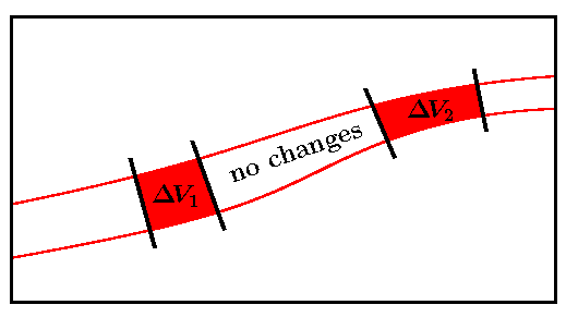we do not have to consider that part of the streamtube where nothing has changed, but only the small volumes of difference at the extremes of the amount of fluid under consideration,